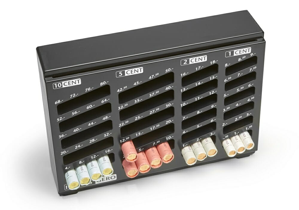 INKiESS GERO for counting and ready-to-hand storage of coin rolls.